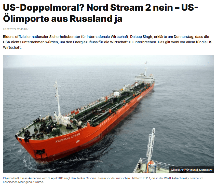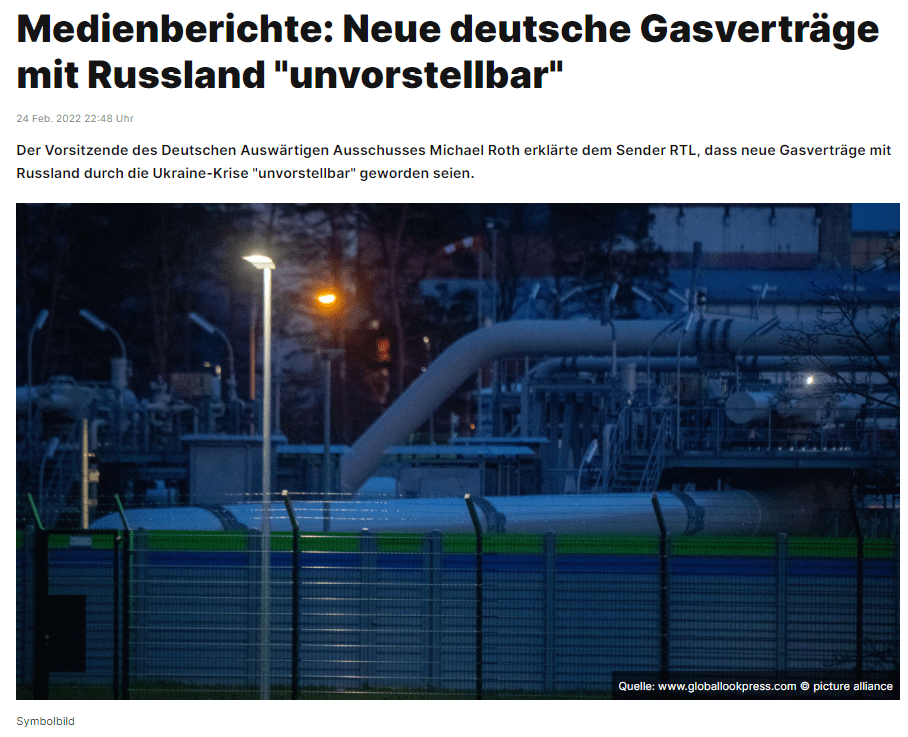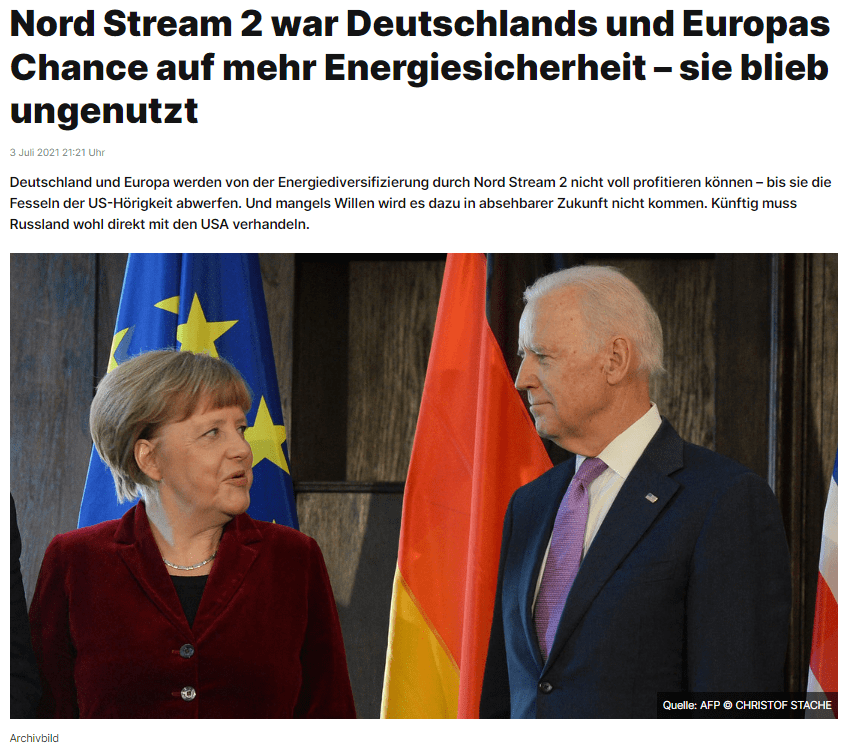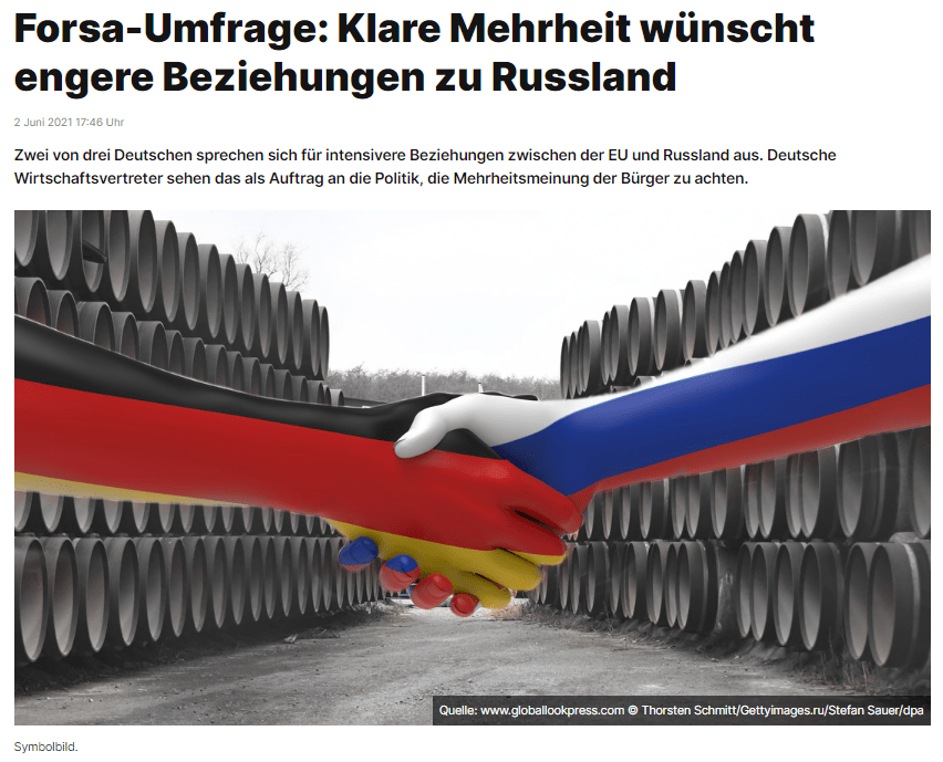 Das führt bereits dazu, dass die Regierung Russlands Deutschland nicht mehr als zuverlässigen Handels- und Wirtschaftspartner in Europa und der Welt, sondern Deutschland als US-Protektorat in Europa ansieht.