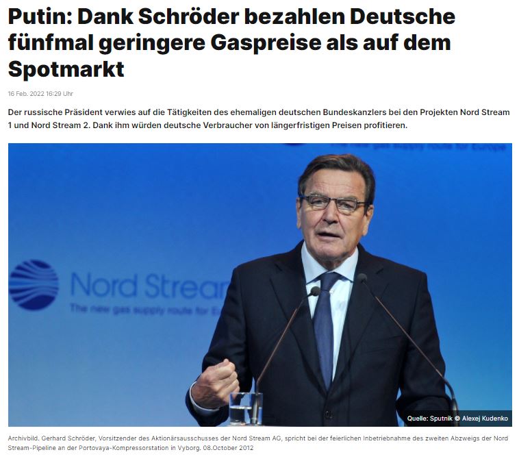 Deutsche Regierungen konnten sich immer politisch auf die Energiesicherheit bei permanent steigenden Energiebedarfs des Landes bzw. selbst zu Zeiten des „Kalten Krieges“ verlassen. Für die deutsche Wirtschaft – ob national oder international aufgestellt, sind niedrige Energiekosten auf den Märkten Quelle für Milliarden Gewinne und Expansionsgeschäfte. Ohne die niedrigen Energiekosten die Russland über Jahrzehnte garantieren konnte, wäre Deutschland kein Weltmarktführer bzw. Exportmeister, hätte in großen Teilen den Menschen keine sicheren Arbeitsplätze mit guten Einkommen sichern können. Mit russischem Gas haben über Jahrzehnte die Menschen und Familien zuverlässig und mit bezahlbaren Energiekosten – trotz Atomausstieg etc., ihre Haushalte wärmen und versorgen können.