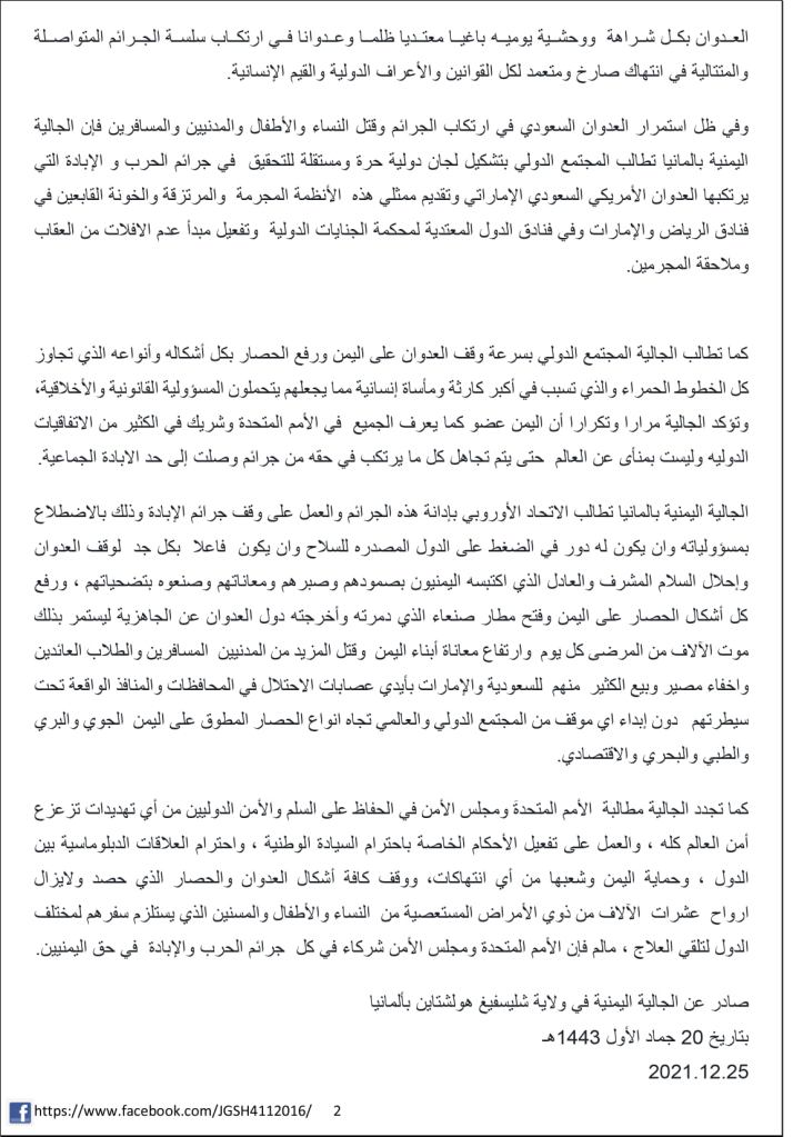 25.12.2021 – Herausgegeben von der jemenitischen Gemeindschaft in Schleswig-Holstein, Deutschland