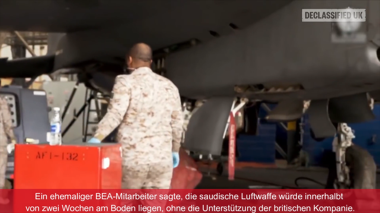 In Gesprächen mit Anwohnern und einem ehemaligen Anwalt des Außenministeriums kommt unser Team einem geheimen Versorgungsflug auf die Spur, den Großbritanniens größter Rüstungskonzern BAE Systems jede Woche von Warton nach Saudi-Arabien schickt, und fragt sich, ob der Luftkrieg ohne britische Unterstützung weitergehen könnte.