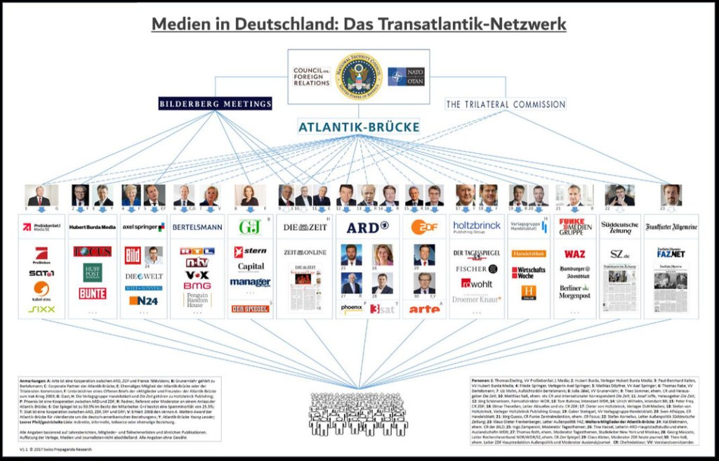 Die differenzierte Beurteilung und Interpretation von historischen Wahrheiten ist also kein Wunder, verfolgt man Presseveröffentlichungen der Freien Medien parallel zu den Transatlantik-Organen. Entwickeln doch die privilegierten Mitglieder der Transatlantik-Medien unter dem Dach der US-amerikanischen Denkfabrik Counsil Foreign Relations in ihrer ganz eigenen freundschaftlichen und ideologisch gleichgeschalteten Gruppendynamik allerlei „übereinstimmende Ansichten“, wie, was, wann, wo, in welcher inhaltlichen Ausrichtung, sie als die Verteidiger der westlichen Werte, Presse- und Meinungsfreiheit, Beiträge veröffentlichen und insbesondere Kritik am US-Imperium vermeidend, publizieren wollen.