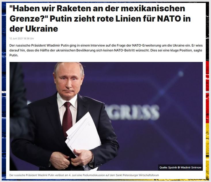 Entgegen den NATO- und EU-Narrativen im Kontext der russischen „Krim-Annexion“ bzw. angeblichen militärischen Einmischung Russlands in der Ost-Ukraine, von westlichen Qualitätsmedien seit 2014 ununterbrochen propagiert, hat die Russische Föderation, keines der NATO-Länder im Sinne des Gewaltverbotes der UN-Charta bedroht, militärisch angegriffen oder gar besetzt. Trotz exorbitanter militärischer Übermacht, wurden in Europa die Nicht-NATO-Staaten Finnland, Irland, Österreich, Schweden und die Schweiz, ebenfalls nicht in das russische Staatsgebiet einverleibt bzw. russische Marionetten-Regierungen – anders als bei den USA, sonst wo auf der Welt, etabliert.