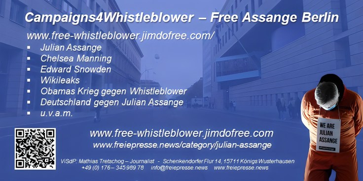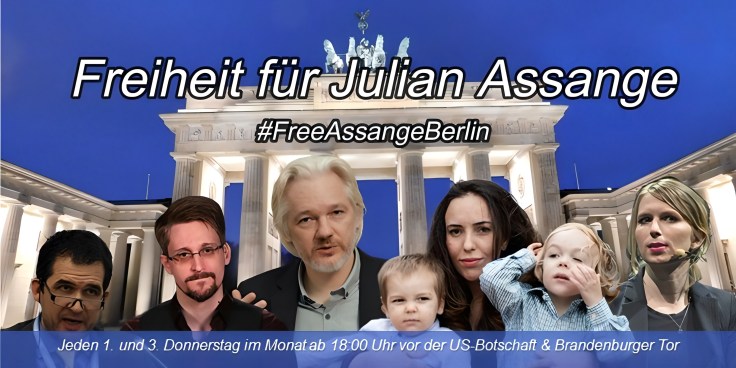Journalismus ist kein Verbrechen! Jeden 1. und 3. Donnerstag eines Monats, treffen sich Menschenrechts- und Friedensaktivisten aus Berlin-Brandenburg ab 18:00 Uhr auf dem Pariser Platz vor den Botschaften der USA und GB in Berlin, um dezidiert Gesicht für die Freiheit von Julian Assange zu zeigen. (Dauer: 06:58)
