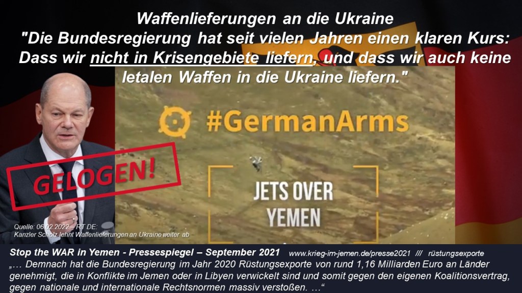 „Die Bundesregierung hat seit vielen Jahren einen klaren Kurs: Dass wir nicht in Krisengebiete liefern, und dass wir auch keine letalen Waffen in die Ukraine liefern.“