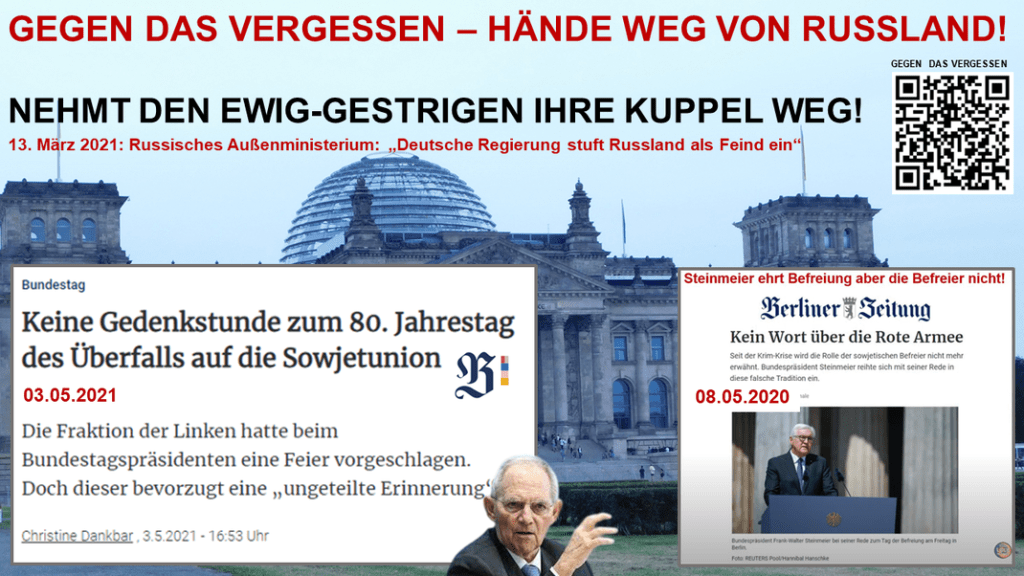 Das deutsche Volk müsste aufgrund seiner Geschichte so wachsam sein und erkennen, was hier für die Menschheit auf dem Spiel steht. Stattdessen werden die russischen Opfer seit Jahren verhöhnt und der russische Präsident öffentlich als geisteskrank diffamiert.