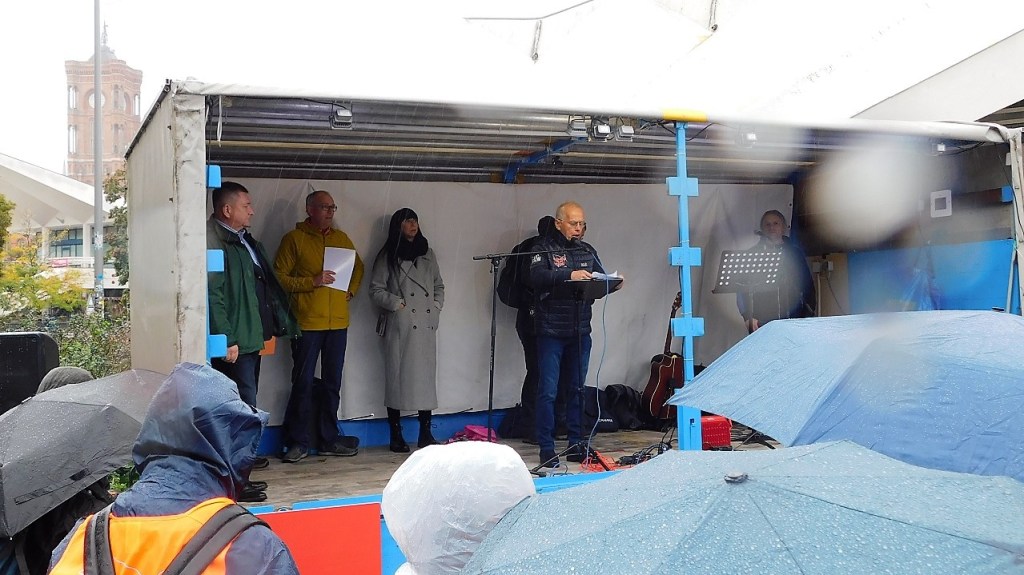 Am 01. Oktober, zwei Tage vor dem Tag der Deutschen Einheit, der ohne Michail Gorbatschow (1990 bis Dezember 1991 letzter Staatspräsident der Sowjetunion) nie möglich gewesen wäre, trafen sich 800 bis 1.000 friedensbewegte Menschen und Handwerker auf Einladung der Kreishandwerkerschaft Anhalt Dessau – Roßlau zu einer Kundgebung in Berlin, direkt unter dem Fernsehturm, um lautstark und unüberhörbar gegen die geschichtsvergessene und kriegerische Russland-Politik Deutschlands zu protestieren.