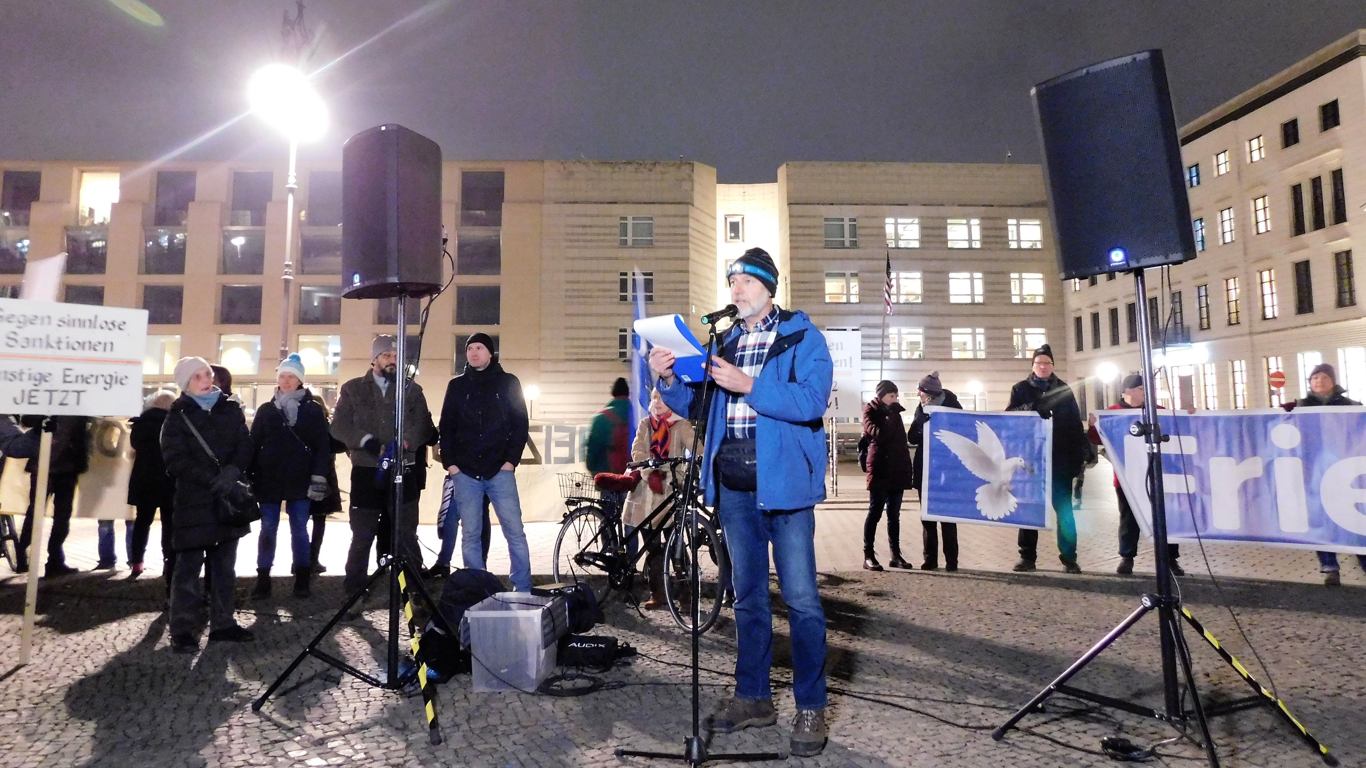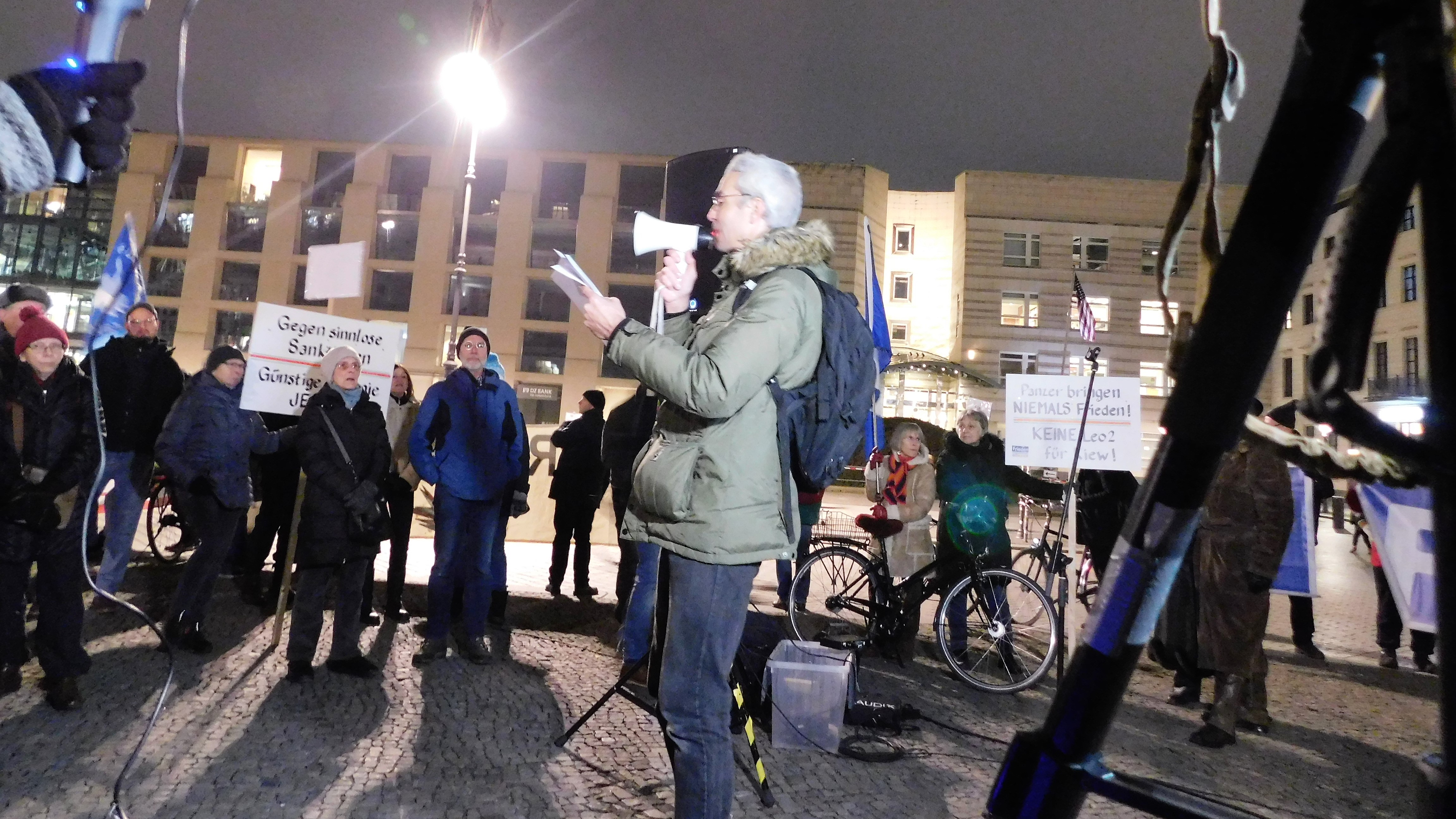 Deshalb stehen wir heute hier, um den heutigen weiteren Eskalationsschritt nicht unkommentiert zu lassen, und deshalb müssen wir mehr Menschen mobilisieren, um vom 24. bis 26.2. beim bundesweiten Aktionswochenende zum Jahrestag des Kriegsbeginns, bei den Ostermärschen und vielen weiteren Veranstaltungen unüberhörbar eine Verhandlungslösung einzufordern.
