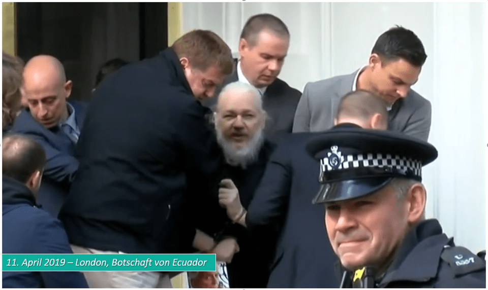 Am 11. April 2019 wird Julian Assange – australischer Journalist und Gründer von WikiLeaks, von der Londoner Polizei aus der Botschaft Ecuadors gekidnappt und ins Hochsicherheitsgefängnis Belmarch verbracht, wo er seither wegen der Veröffentlichung von US-Kriegsverbrechen systematischer Folter ausgesetzt wird und auf seine Auslieferung an die USA wartet, wo ihm 175 Jahre Haft drohen. Für Julian Assange kommt das einem Todesurteil auf Raten gleich!