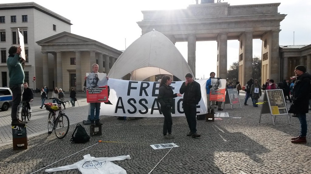 Jeden 1. bzw. 3. Donnerstag im Monat treffen sich von 18:00 bis 20:00 Uhr auf dem Pariser Platz in Berlin zwischen den Botschaften der USA, Frankreich, GB und dem Brandenburger Tor, Free-Assange- Berlin-Aktivisten, um die sofortige Freilassung von Julian Assange zu fordern.