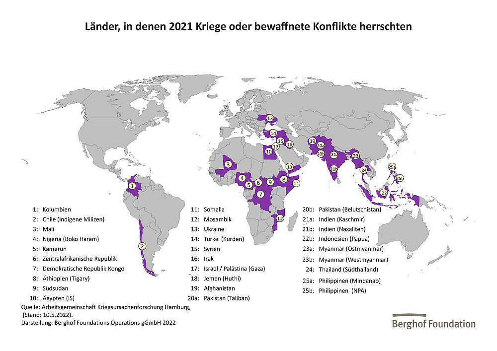 Über 108 Mio. Menschen sind Ende 2022 weltweit wegen Hunger und Durst sowie aufgrund der Klimaschwankungen und insbesondere 28 Kriegen bzw. bewaffneten Konflikten – respektive gigantischer Rüstungsexporte in Kriegsländer auf der Flucht, 735 Millionen Menschen leiden weltweit unter Hunger!