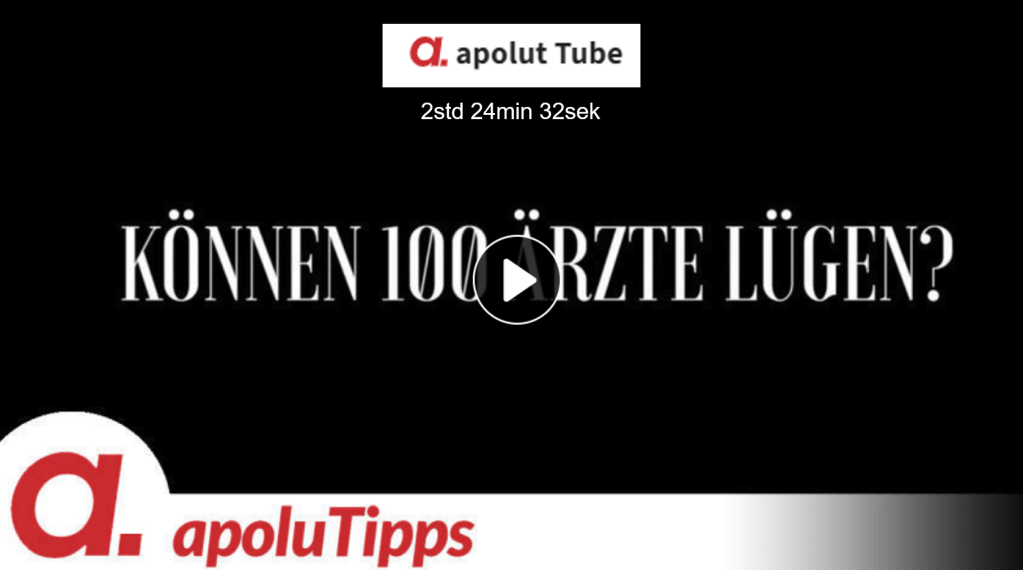 Der Dokumentarfilm “Können 100 Ärzte lügen?” präsentiert Mediziner und Wissenschaftler, die zu dem Wissenschaftsbetrug und der kollektiven Bewusstseinsverwüstung eine eigene Haltung gezeigt haben. (Dauer: 02:24:32)